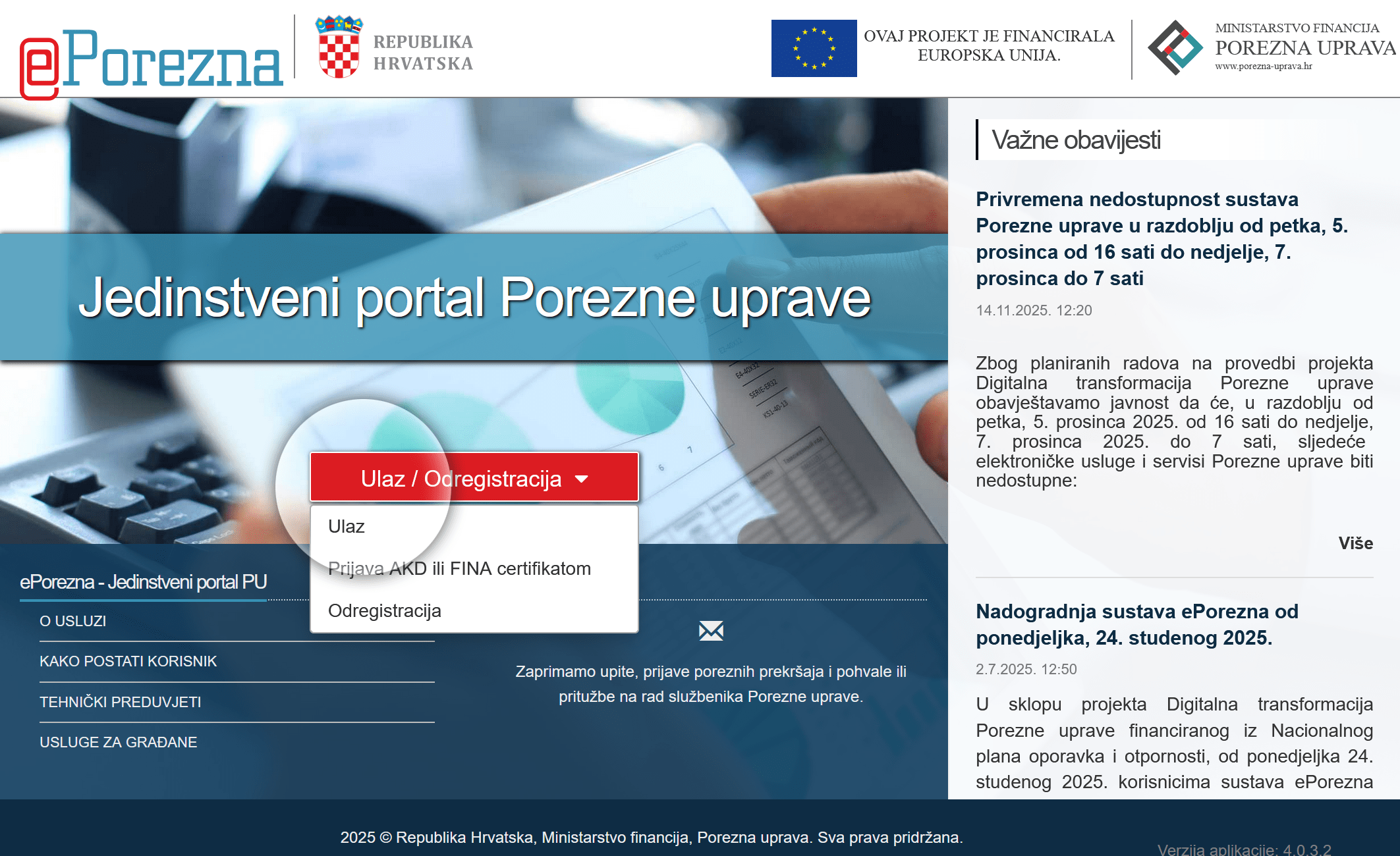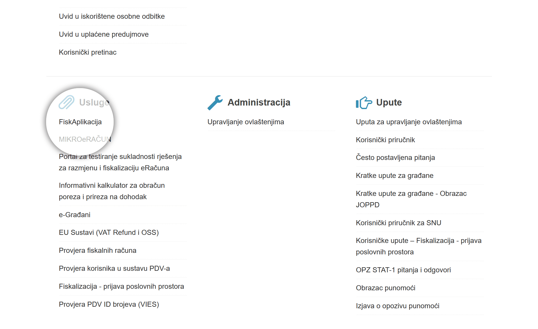 Nakon što se otvori naslovna stranica ePorezne, nađi "FiskAplikacija" i klikni na to.