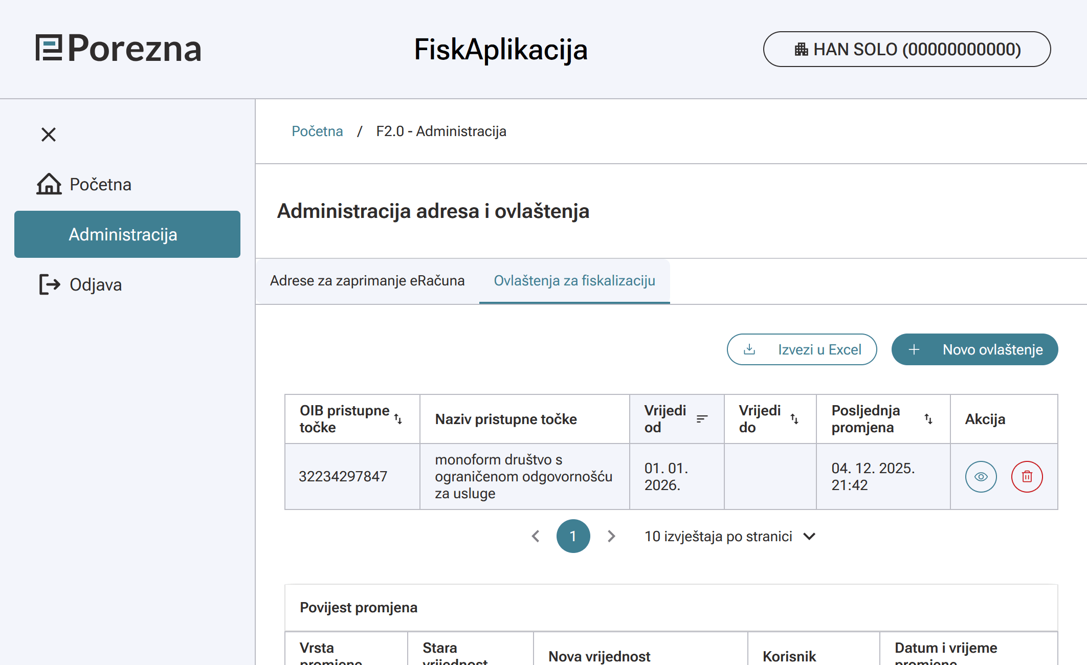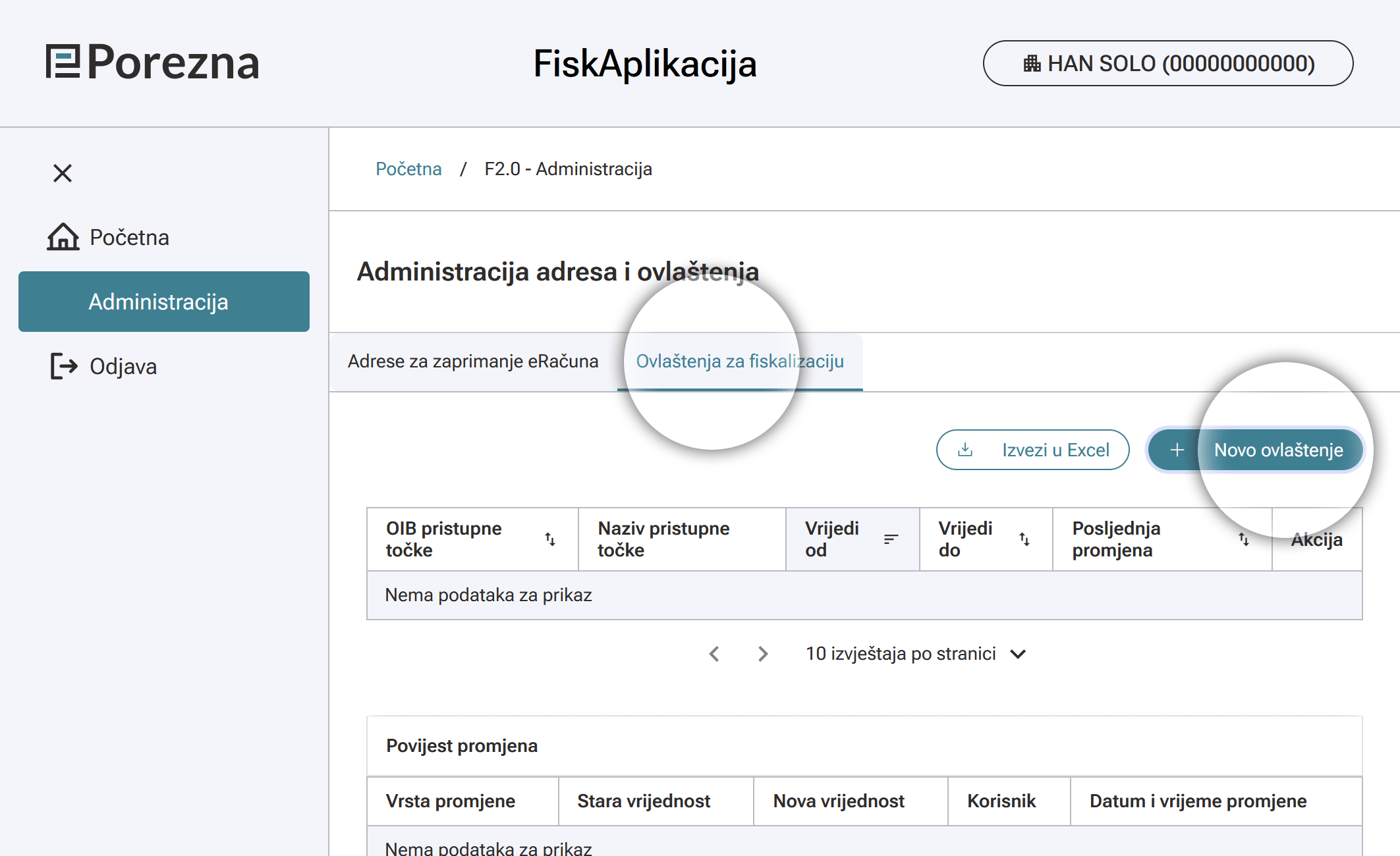 U administraciji klikni na "Ovlaštenja za fiskalizaciju" i zatim na gumb "Novo ovlaštenje".